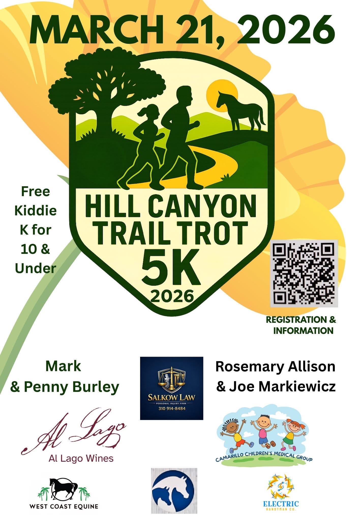 Lace up your trail shoes and join us for the inaugural Hill Canyon Trail Trot, a scenic run along the creek through canyon trails and oak-lined paths. This fun, family-friendly race welcomes runners, walkers and hikers of all levels.